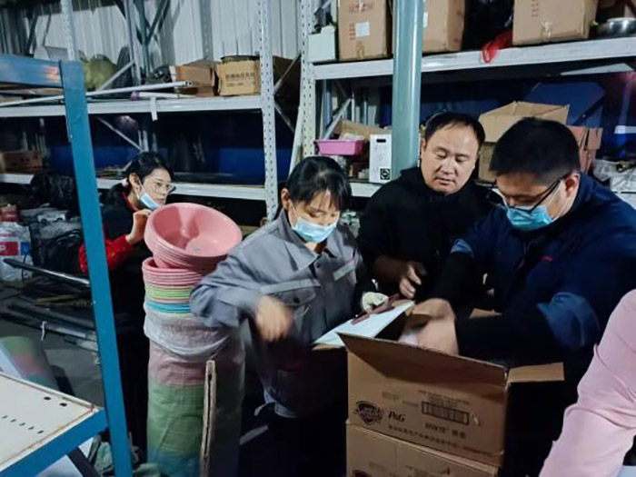 疫情突然來(lái)襲,公司第一時(shí)間啟動(dòng)疫情防控應(yīng)急預(yù)案,生產(chǎn)調(diào)度部作為生產(chǎn)各類(lèi)物料和生活基本物資存儲(chǔ)部門(mén)快速進(jìn)入備戰(zhàn)狀態(tài)。一面溝通生產(chǎn)車(chē)間和供應(yīng)部,確定庫(kù)存儲(chǔ)備量;一面統(tǒng)計(jì)各部門(mén)駐廠人員,有序?yàn)橛行枰娜藛T發(fā)放生活物資。根據(jù)實(shí)際情況,公司留下540名干部員工值守,保留了八成的產(chǎn)能,生產(chǎn)調(diào)度部部長(zhǎng)蔣艷萍統(tǒng)籌安排本部門(mén)人員王文芳、龐瑞、唐玉曉、王娟和科員楊文月,準(zhǔn)確上報(bào)庫(kù)存數(shù)據(jù),協(xié)助各車(chē)間進(jìn)行生產(chǎn)安排,及時(shí)收、發(fā)物資,耐心為二、三廠區(qū)各車(chē)間、各部門(mén)值守人員發(fā)放了牙刷、牙膏、洗發(fā)膏、香皂、毛巾、洗臉盆、衛(wèi)生紙、口罩、墊子和被子等生活所需物資,做到賬目清楚準(zhǔn)確。為兩個(gè)廠區(qū)有序平穩(wěn)開(kāi)展生產(chǎn)創(chuàng)造了可能。