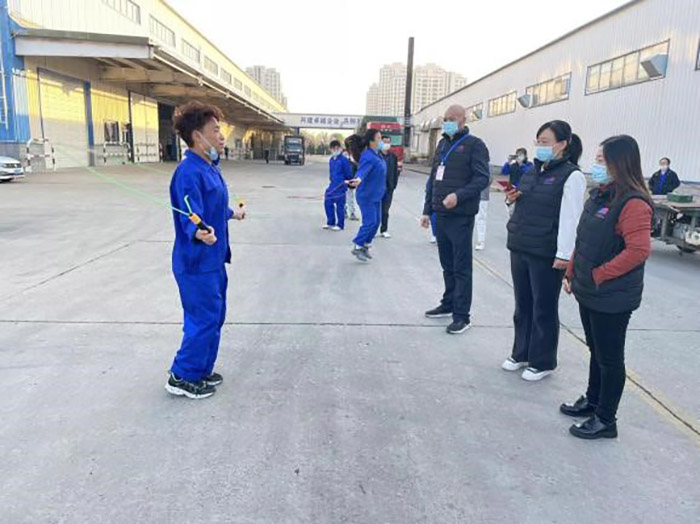 團(tuán)體跳繩項(xiàng)目在輸液二車間門前廣場(chǎng)舉行。場(chǎng)上隊(duì)員團(tuán)結(jié)奮進(jìn)、努力拼搏,場(chǎng)下觀眾高呼加油,掌聲、歡呼聲連綿不斷。廠區(qū)內(nèi)充滿了歡聲笑語(yǔ),營(yíng)造了一片和諧歡快的氣氛。