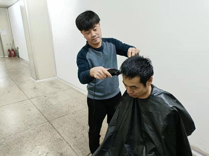 這一幕發(fā)生在11月21日公司中提車間。疫情阻擊戰(zhàn)開始至今已將近一月,為做好抗疫情保生產(chǎn)工作,公司采取了封閉式管理。500多名干部員工駐廠,堅守崗位,加班加點,維護了廠內(nèi)良好的生產(chǎn)生活秩序。然而,封控近一個月,越來越多的人有了理發(fā)需求。尤其是男職工,一個個發(fā)壓眉、鬢過耳,凌亂而萎靡的樣子,讓人看在眼里急在心里。