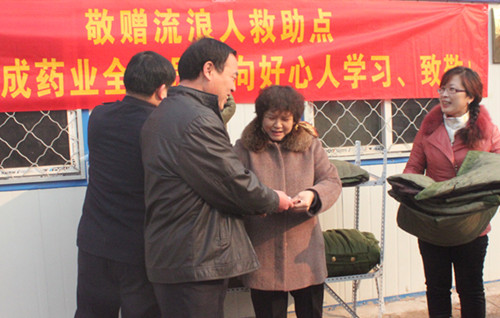 公司領(lǐng)導(dǎo)聽到這個(gè)消息深受感動,為公司能有這么一位好心的職工感到自豪。天成藥業(yè),作為“娘家人”,作為一個(gè)有社會責(zé)任的企業(yè),更要做好他們堅(jiān)強(qiáng)的后盾。徐總受董事長總經(jīng)理王振剛委托代表全體天成人送去1000元現(xiàn)金和十件御寒的大衣,希望這些款物能為那些無家可歸的人帶去溫暖,也希望所有天成人向他們學(xué)習(xí)。我們的企業(yè)宗旨是“制好藥·為人民”,我們應(yīng)該樹立為人民服務(wù)、已成成人的大愛思想,用自己的愛心來服務(wù)企業(yè)、服務(wù)大眾、服務(wù)社會。