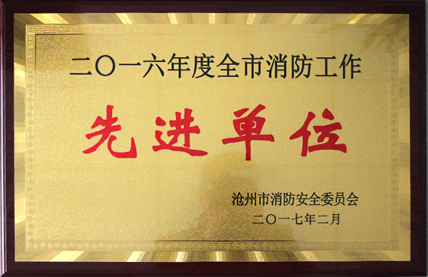 近日,滄州市消防安全委員會召開2016年度全市消防工作先進(jìn)單位和先進(jìn)個人的表彰大會。包括我公司在內(nèi)全市有61家單位和70位個人受到表彰。