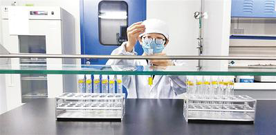 在河北天成藥業(yè)股份有限公司中心化驗(yàn)室,化驗(yàn)員正在對新生產(chǎn)出來的注射用過氧化碳酰胺進(jìn)行質(zhì)量檢驗(yàn)。河北日報(bào)通訊員 鄭富貴攝