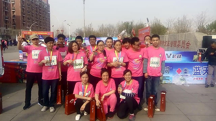 2017年4月9日,滄州市第四屆半程(含迷你)馬拉松賽圓滿結束,此次賽事,由滄州市長跑協(xié)會和開發(fā)區(qū)管委會共同承辦。我公司領導十分重視,積極組織,來自生產(chǎn)車間和后勤科室的18名健兒踴躍參加。女子組有:葉勇新、馮坤 、梁靜微 、托穎虹 、王文華 、張桂鳳、王春芬;男子組有:盛勇軍、唐廣勇、伊銀超、馬鵬舉、蔣觀榮 、馬忠杰、劉毅鵬、李東亮、劉建營、劉振楠、鄭福貴。他們積極參與,認真準備,在賽場上放飛青春與激情,展現(xiàn)了天成人高昂的斗志與活力。經(jīng)過與2000多人的激烈角逐,來自二分廠輸液二車間的張桂鳳獲得了女子迷你馬拉松賽的第9名的好成績。