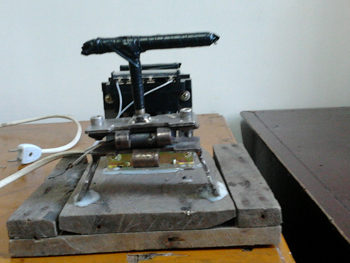 自制熱熔壓片機初級產(chǎn)品制作完成的那天,我們很激動,像迎接一個新生的嬰兒,又像學生答完考卷等待老師的評分。可是,初期的試驗結(jié)果卻給我們潑了一盆冷水。自制熱熔壓片機初級產(chǎn)品制出的樣品薄厚不均,透明度差,根本不符合紅外光譜檢驗的要求,在這種情況下,我們沒有灰心,經(jīng)過進一步的技術討論,發(fā)現(xiàn)熱熔壓片機的構(gòu)型是對試驗結(jié)果影響最大的因素。我們自制的熱熔壓片機由下列四部分組成:電源連接部分、控制變壓器、加熱板和成型板。制取薄片樣品時,采用絕緣電線與電源連接,為自制熱熔壓片機供電;通過控制變壓器獲取合適的電壓為加熱板供熱;將樣品置于加熱板上;手壓成型板,與加熱板重合擠壓樣品成型。其中加熱板采用手動壓片的方法,這就是造成實驗失敗的根本原因。