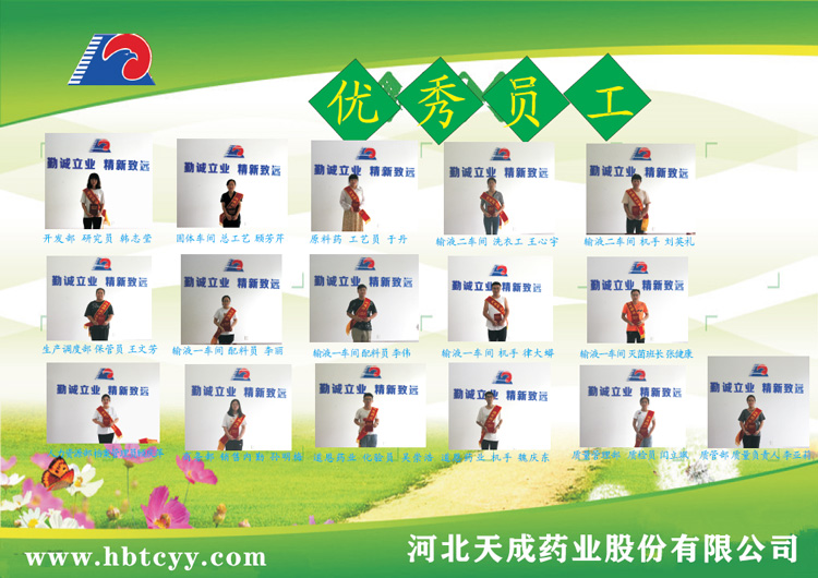 12 吳崇浩 道恩藥業(yè) 化驗(yàn)員 他聽從領(lǐng)導(dǎo)安排,以工作為重,主動(dòng)加班加點(diǎn),任勞任怨,及時(shí)準(zhǔn)確的完成檢測(cè)任務(wù),為車間生產(chǎn)進(jìn)度提供保證。